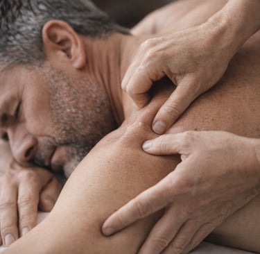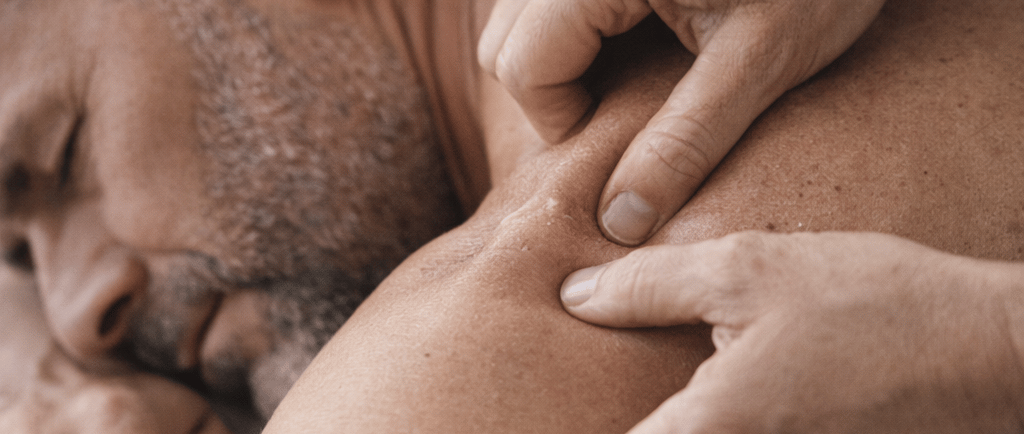 We begonnen met een kort gesprek. Hij vond het prettig om eerst te delen wat er speelde, wat hij voelde. Geen standaard praatje, maar écht afgestemd. Daarna startten we de sessie met zachte, gerichte triggerpointmassage. Juist niet hard duwen, maar met aandacht werken op de spieren die onder chronische spanning stonden — zoals de serratus anterior, net onder de oksel. Deze spier kan precies die pijn veroorzaken die voelt als hartklachten.
